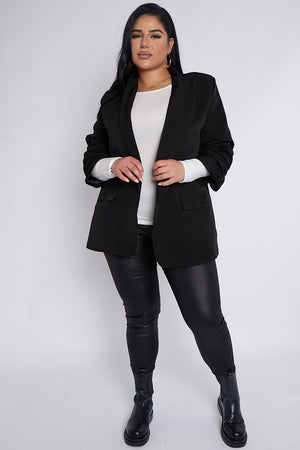 Blazer jakkinn er vasalaus, opinn með léttu fóðri. Kvartermar með rykkingu.