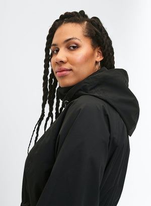 Jakkinn er lokaður að framan með vatnsheldum rennilás.