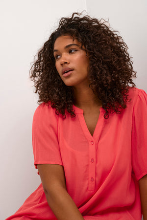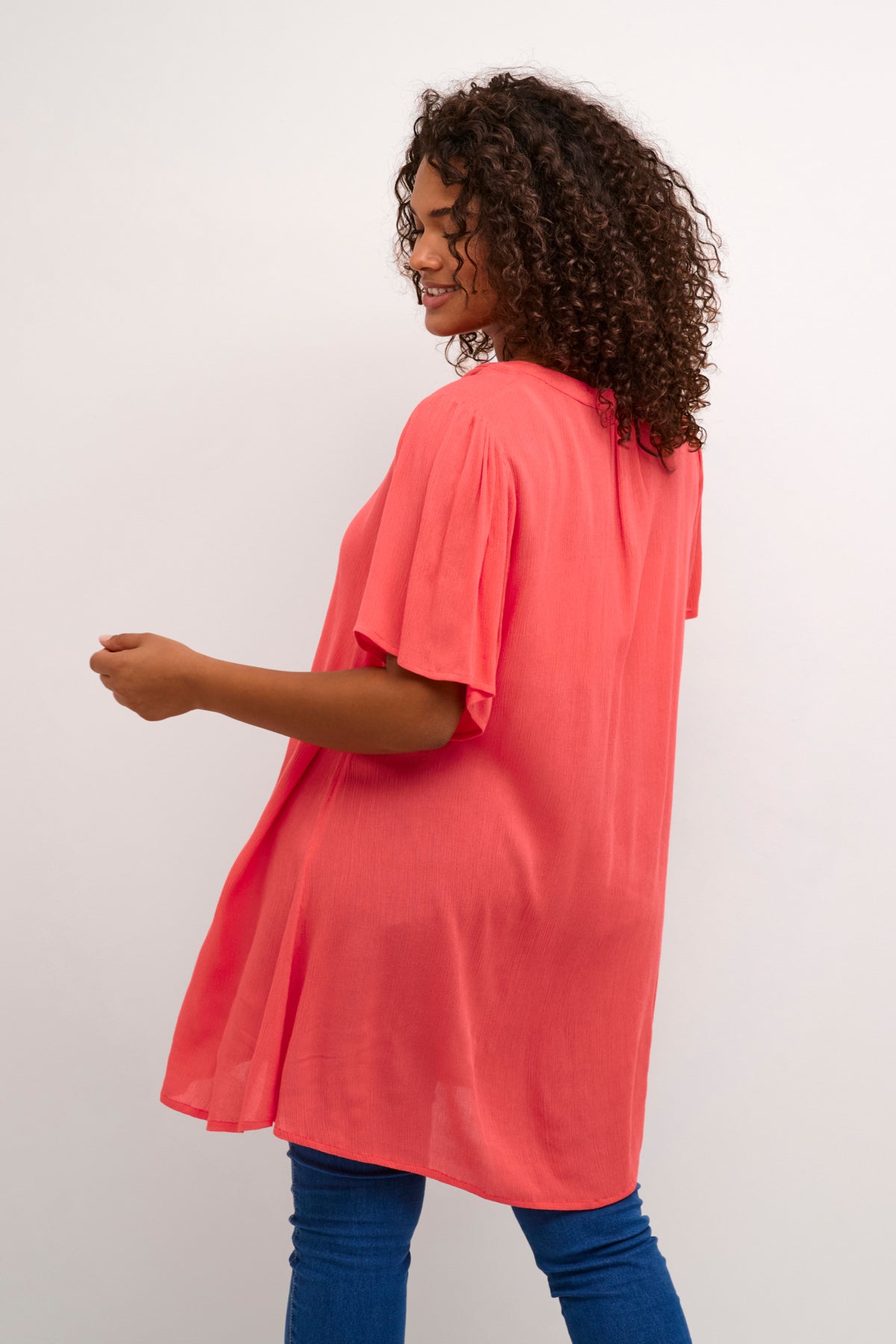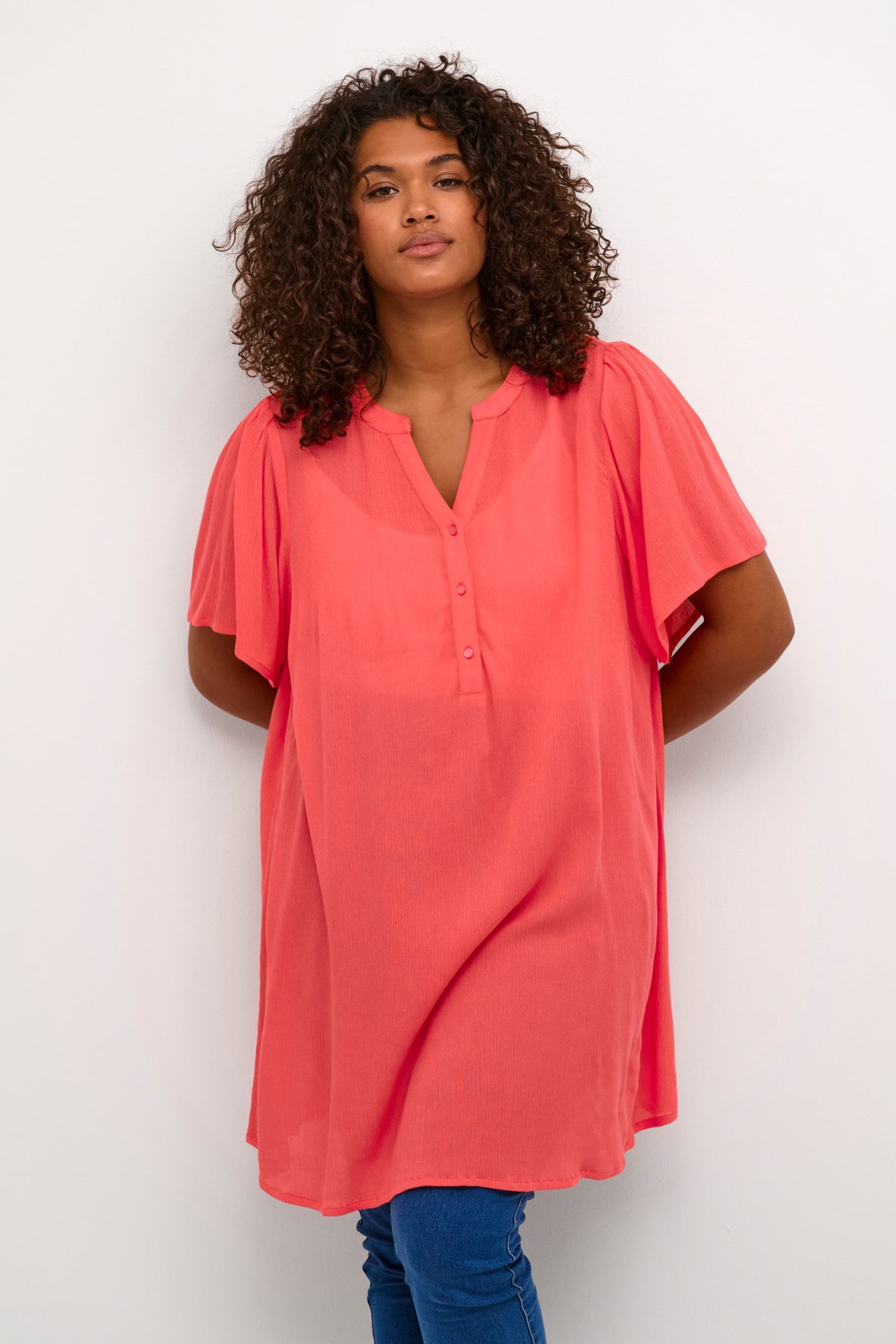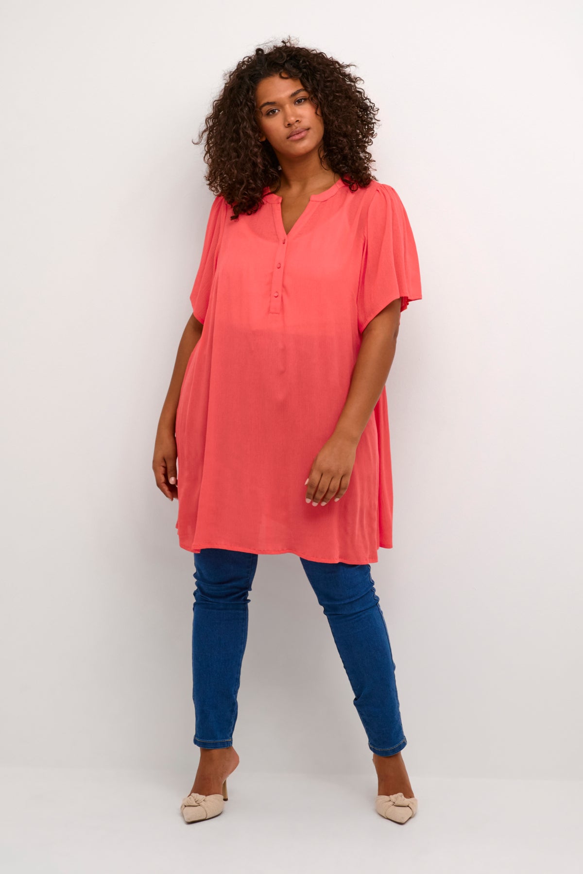 Túnikan er í víðu A-sniði og er með stuttum lausum ermum.