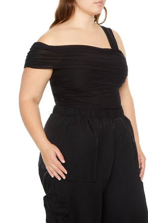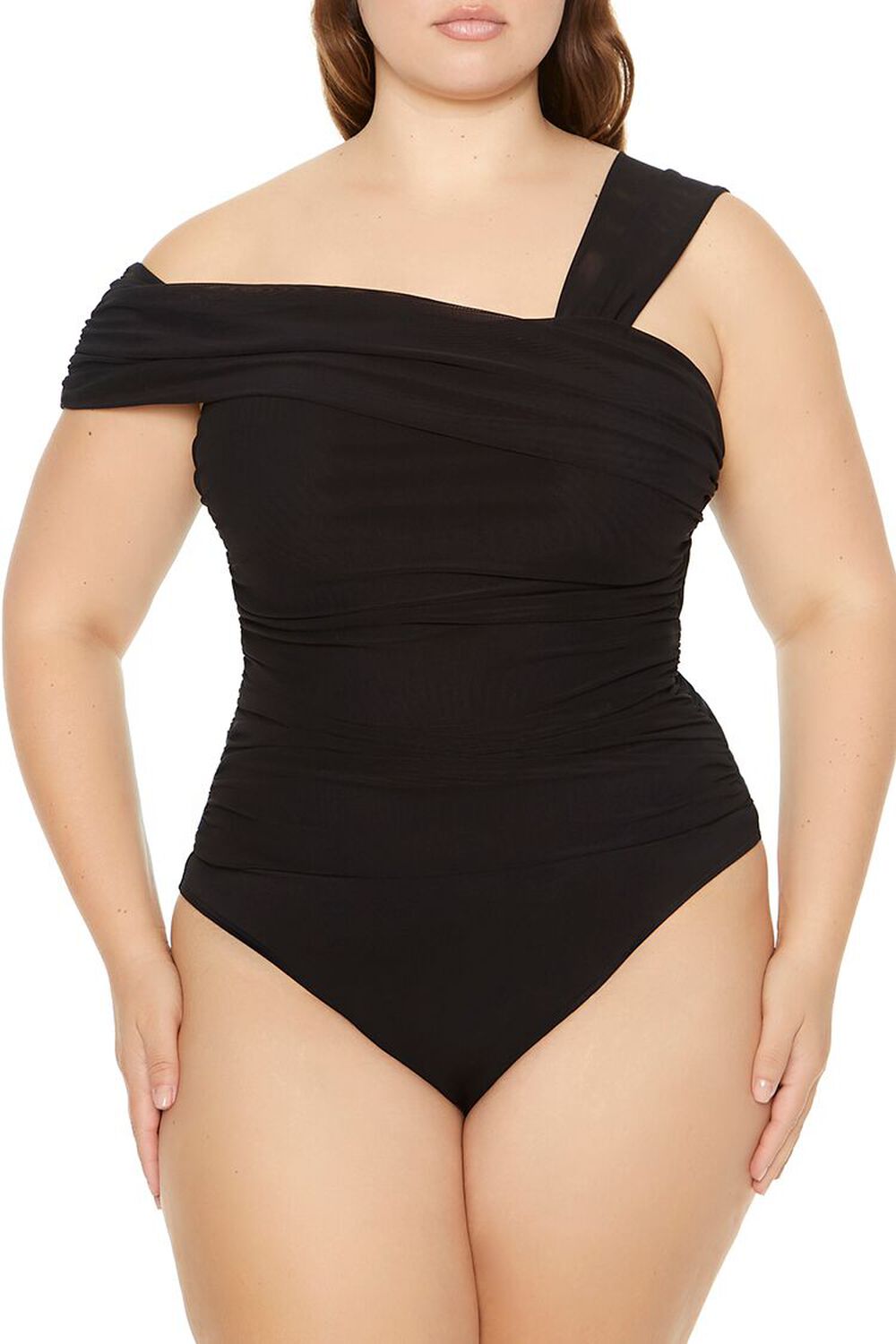Ytra mesh efnið er rykkt en innra er slétt og heldur aðeins við. Samfellan lokast saman með tveimur smellum að neðan og g-strengur að aftan.