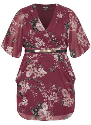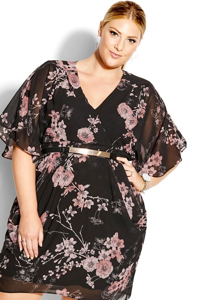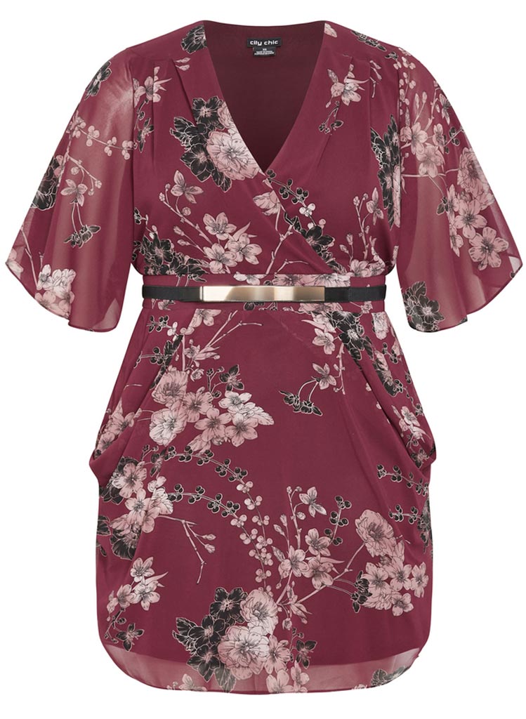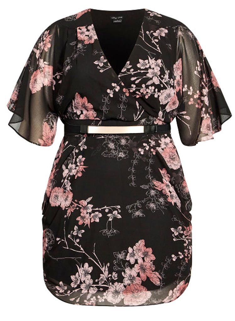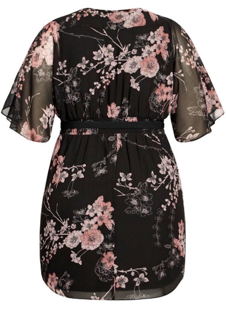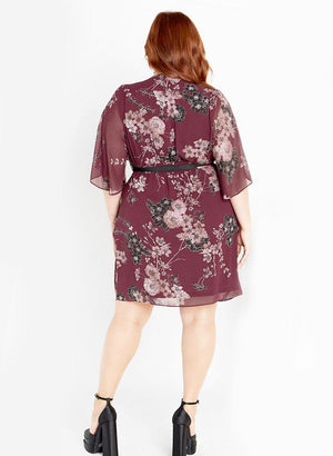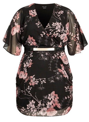 Vandaður sparikjóll með klæðilegu kimono sniði og belti fyglir með sem þú getur líka tekið af ef þú vilt breyta kjólnum.