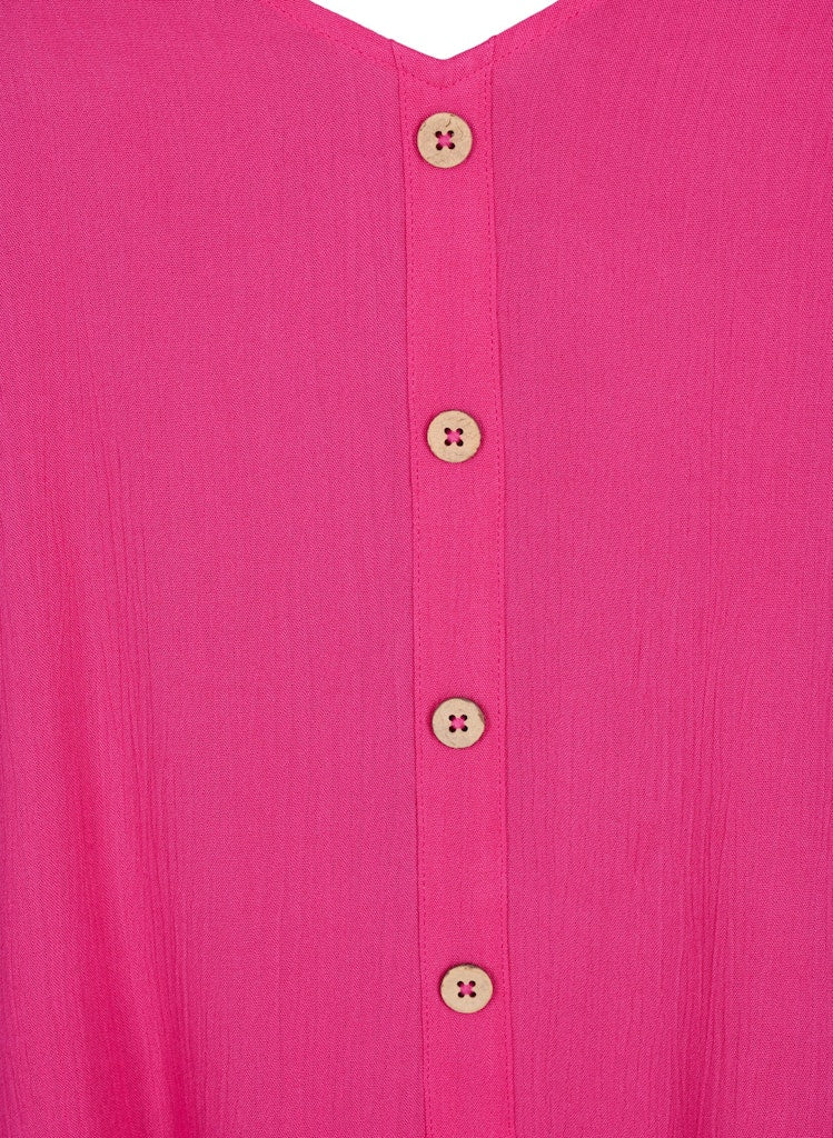 Hinsvegar getur viscose minnkað aðeins í þvotti. ​Við mælum með því að þvo á handþvottaprógrammi og teygja vel á flíkinni og slétta úr á meðan hún er blaut og hengja upp til þerris.