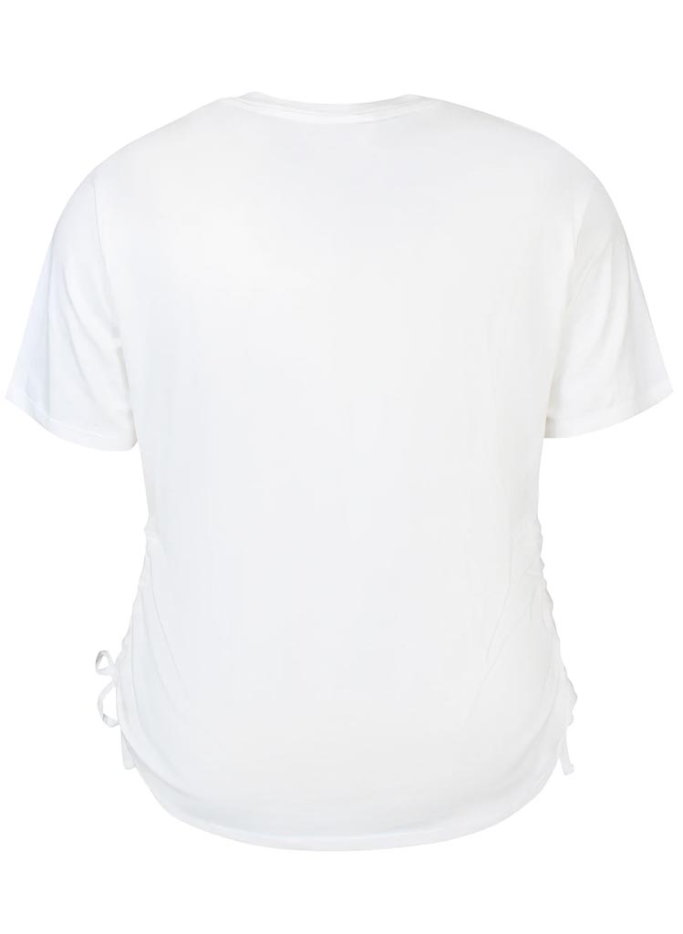 Rúnnað hálsmál og laust beint snið ásamt reimum á hliðunum svo þú getur rykkt upp toppinn.