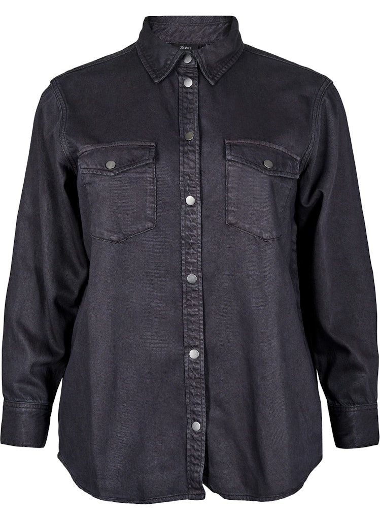 Töff gallaskyrta frá danska merkinu Zizzi sem má líka nota sem léttan jakka.
