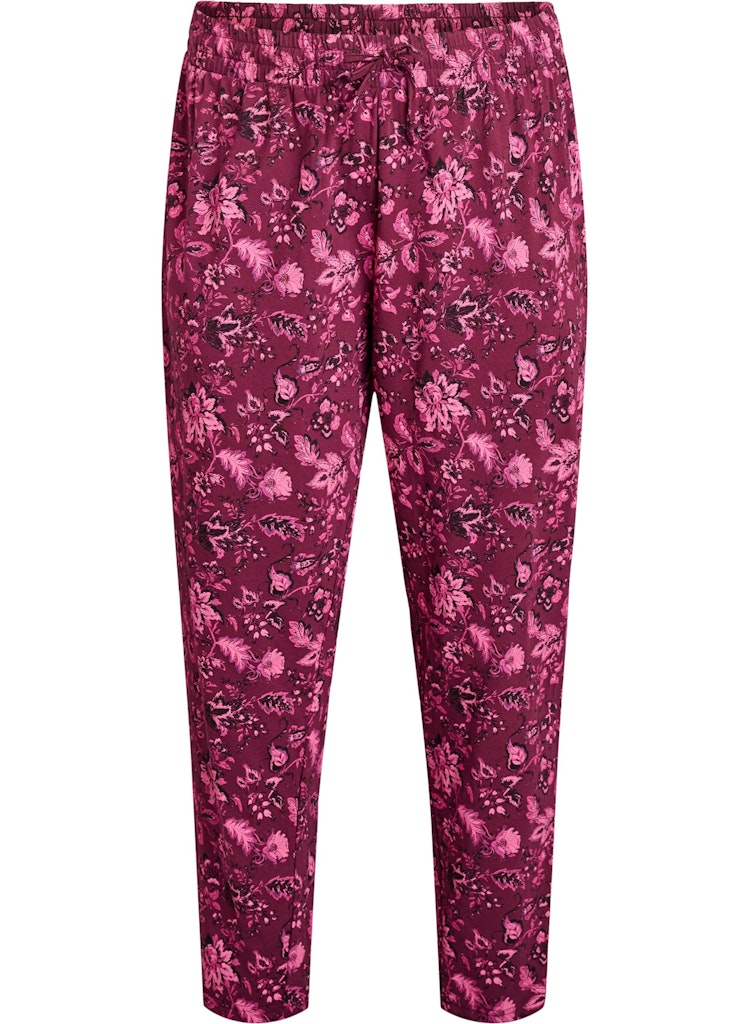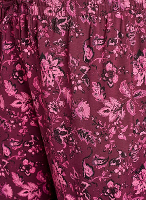 Laust snið, teygja og reim í mitti og fallegt paisley-mynstur.