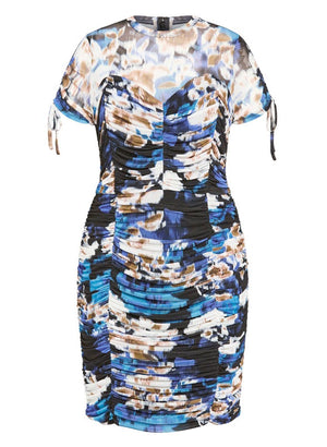 Mjög klæðilegur aðsniðinn kjóll með rykkingum að framan og á hliðunum.