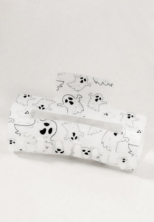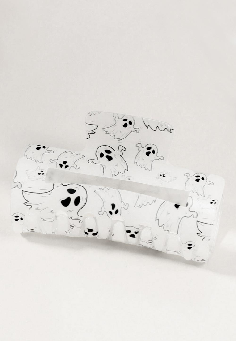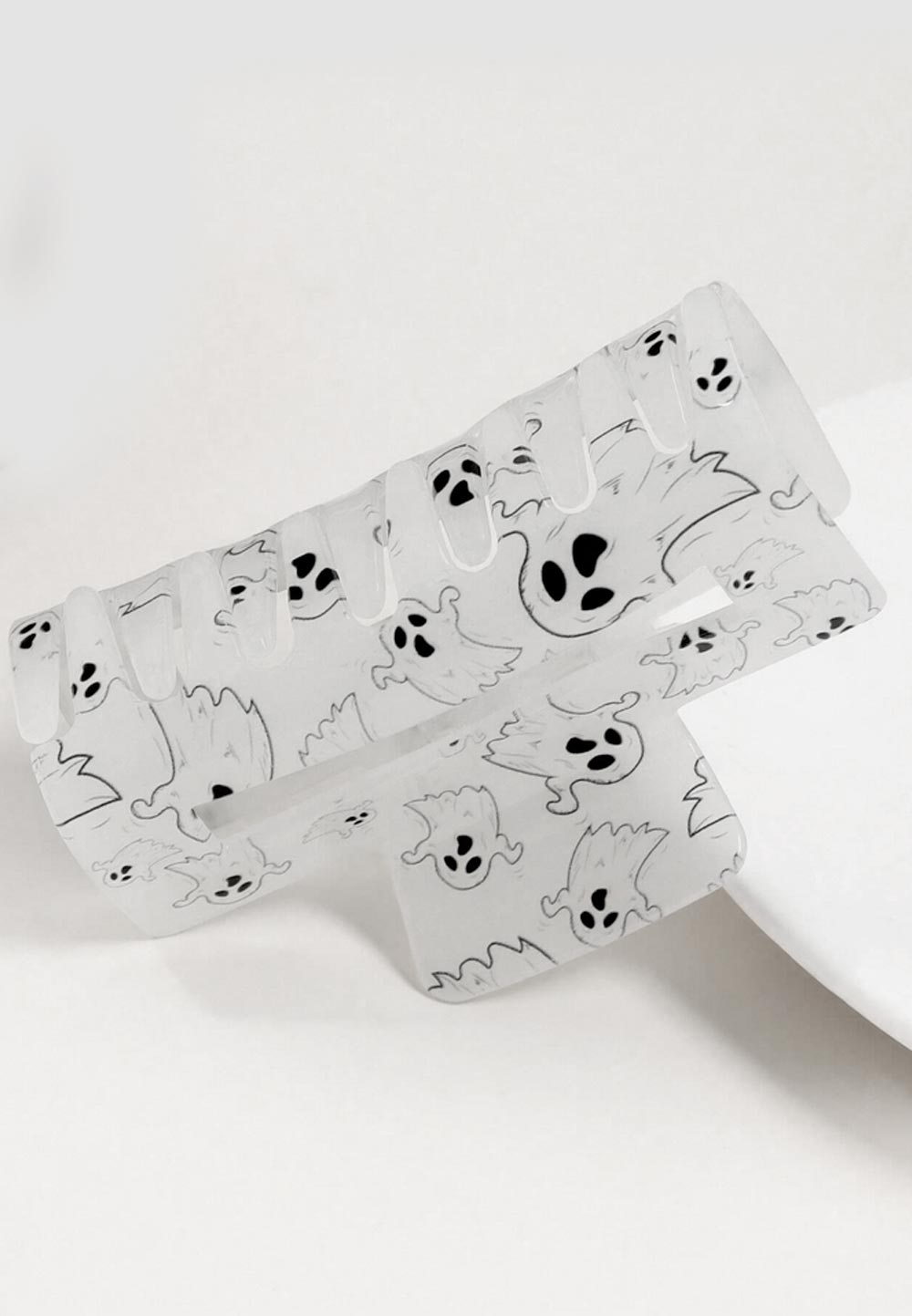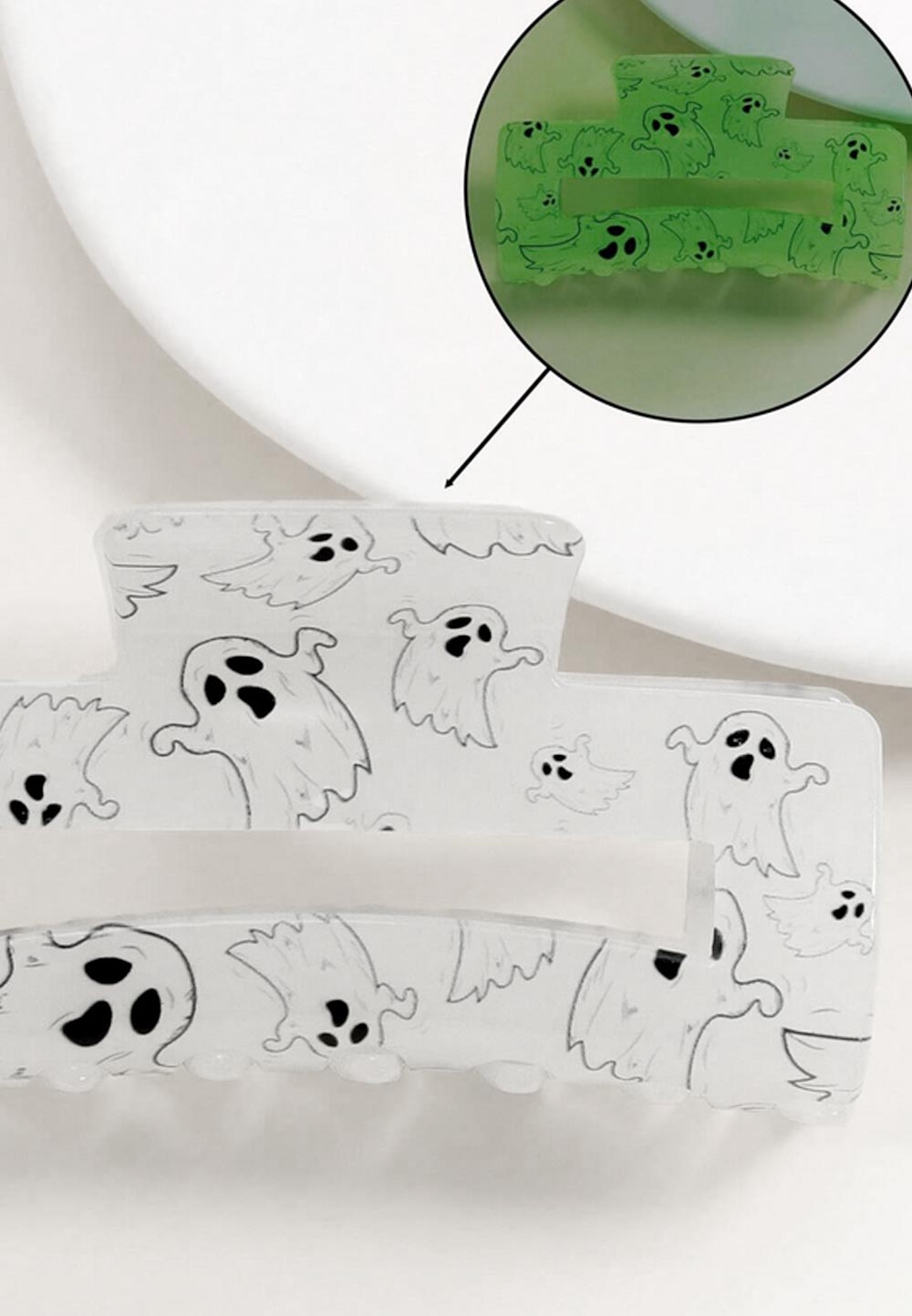 Hvít drauga hárklemma sem glóir í myrkri - fullkomið fyrir Halloween og spooky haust daga.