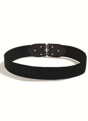 Svart teygjubelti með fallegri skrautsylgju að framan.