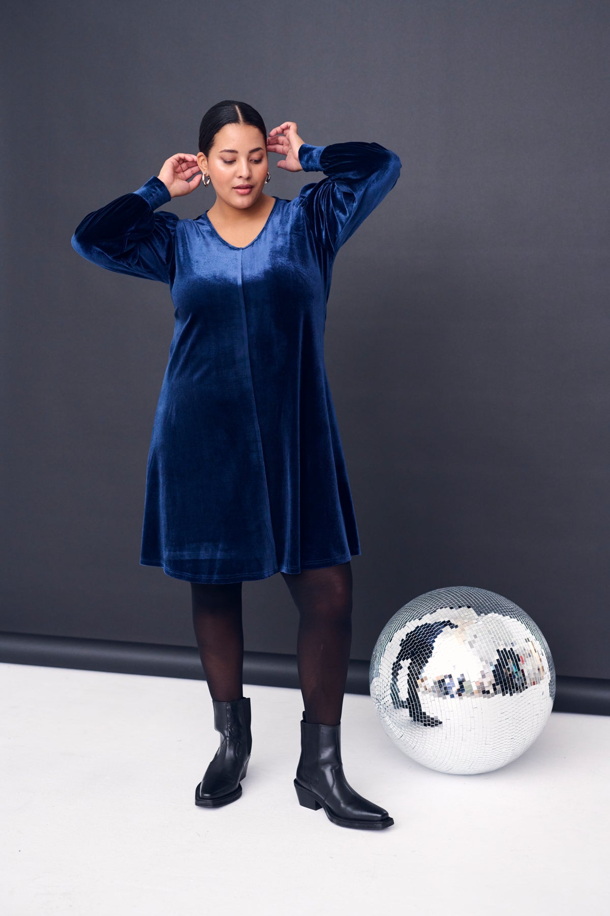 Dásamlegur mjúkur velúr sparikjóll frá danska lúxus merkinu KAFFE CURVE.