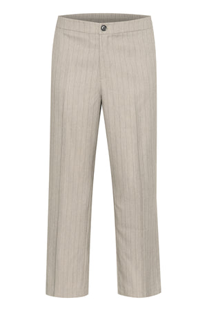 Buxurnar eru ljósar með fínlegum lóðréttum línum.
