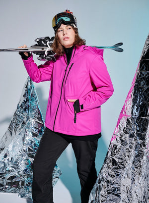 Jakkinn er lokaður með vatnsheldum rennilás og er með tveimur renndum vösum á hliðunum og renndum vasa framan á vinstri hlið.