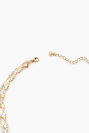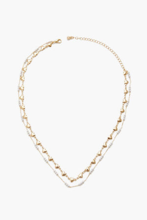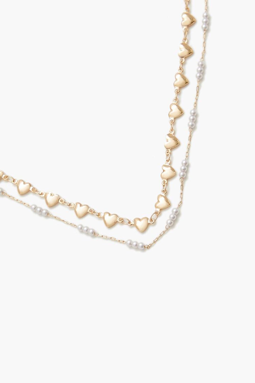 2 keðjur saman í einu - önnur er með litlum perlum og hin með litlum hjörtum.