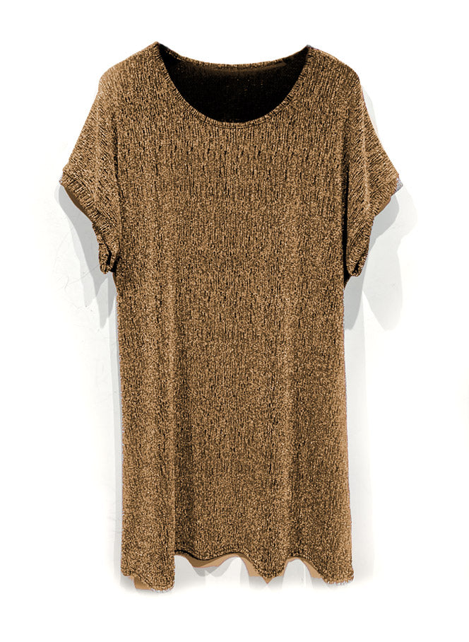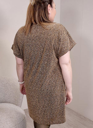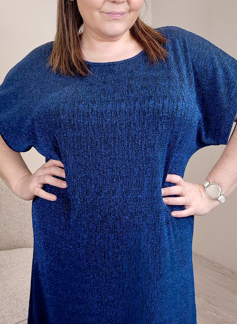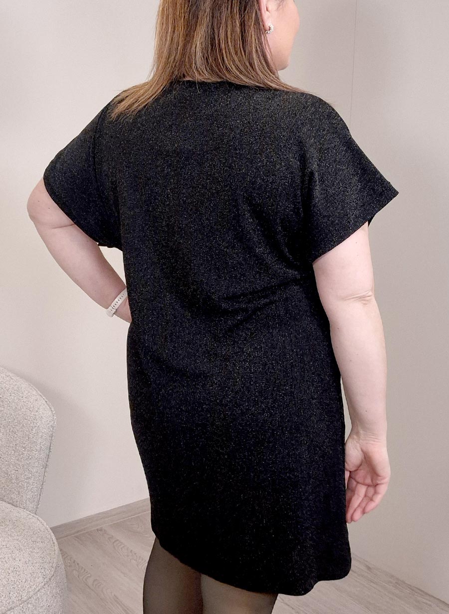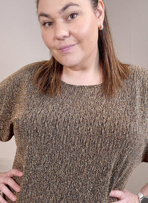 Þægileg og létt túnika úr teyganlegu efni og með lúrex glitrandi þráðum í efninu.