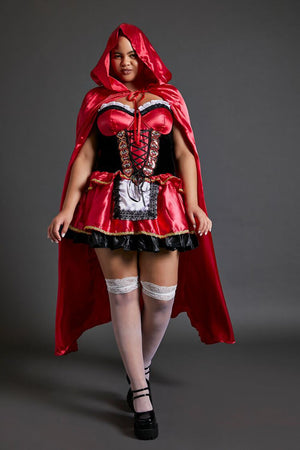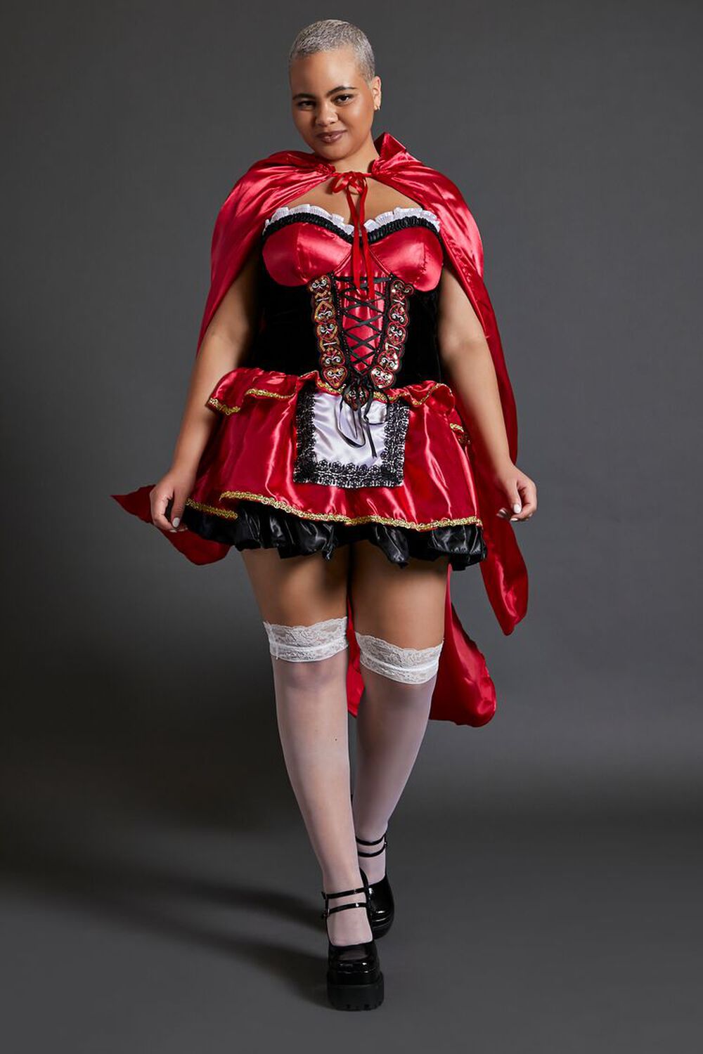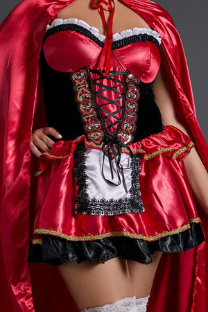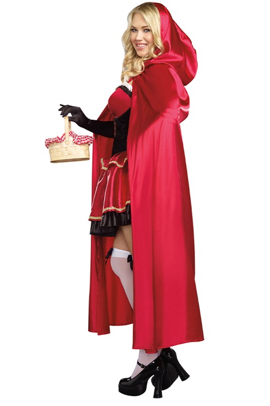 Búninga-sett sem inniheldur kjól og rauða satín skikkju.