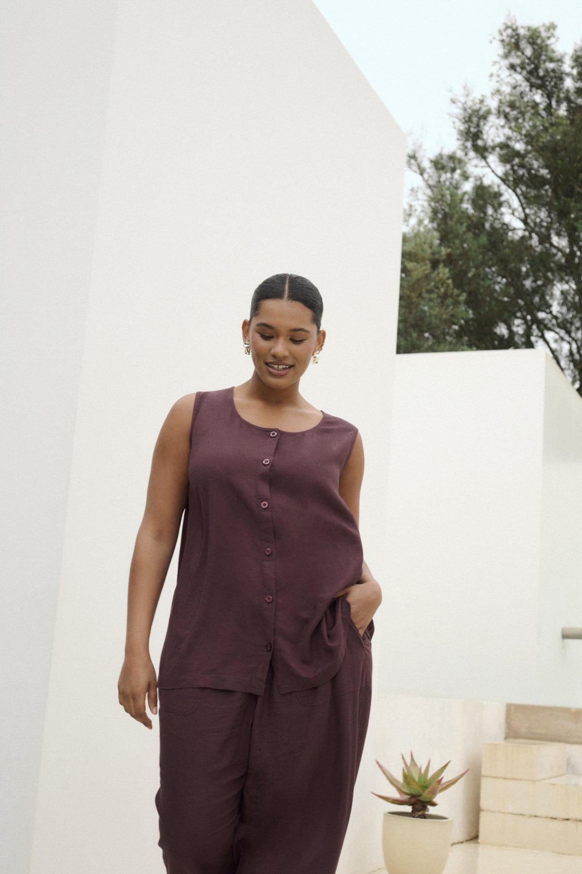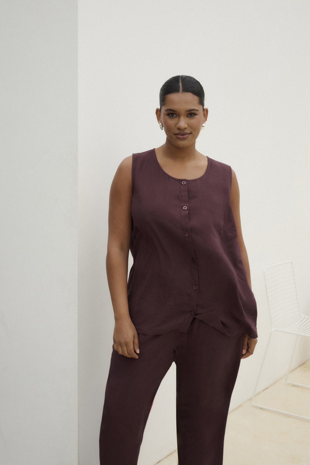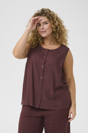 Léttur og þægilegur ermalaus toppur hnepptur alla leið niður úr Mille hörlínu Kaffe Curve.