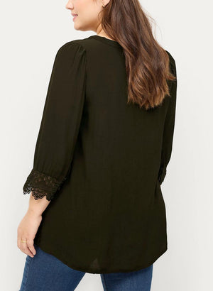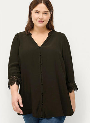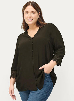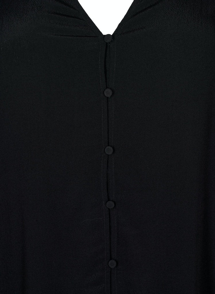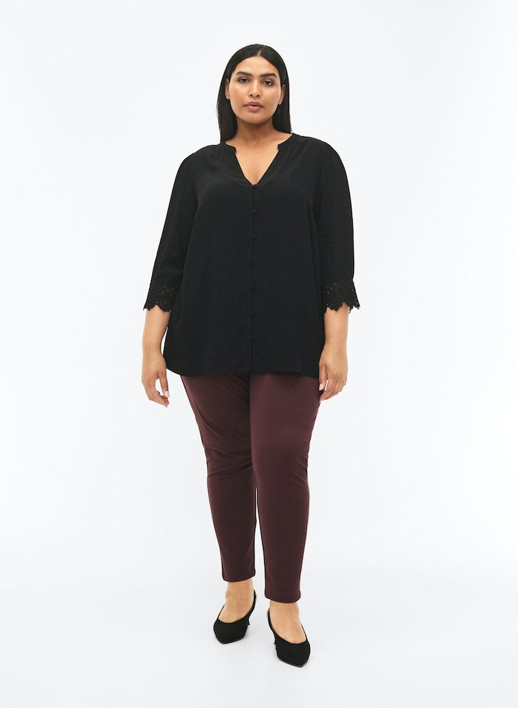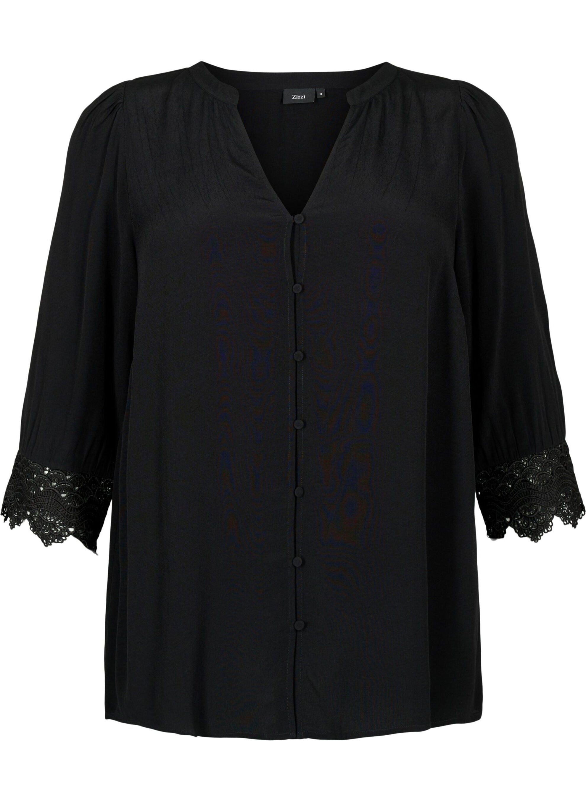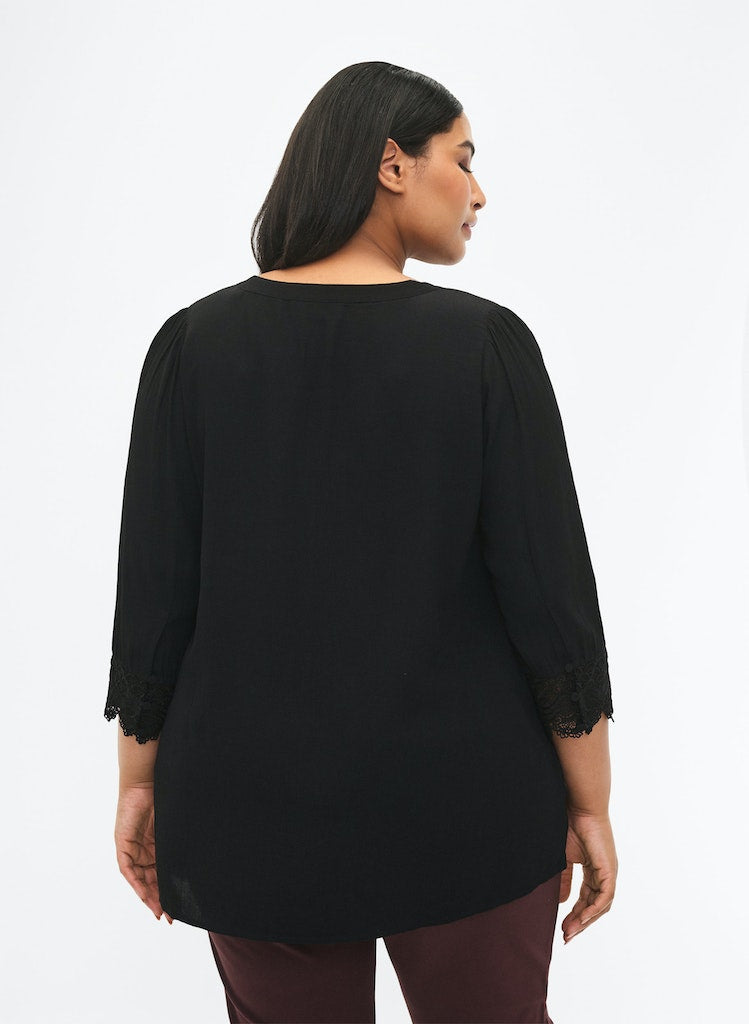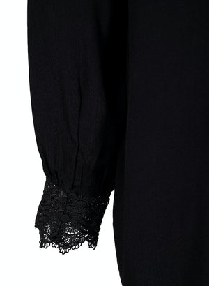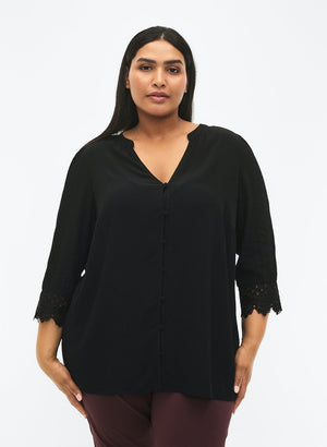 Klassísk svört með V-hálsmáli, hálfum ermum og blúndubekk á ermunum