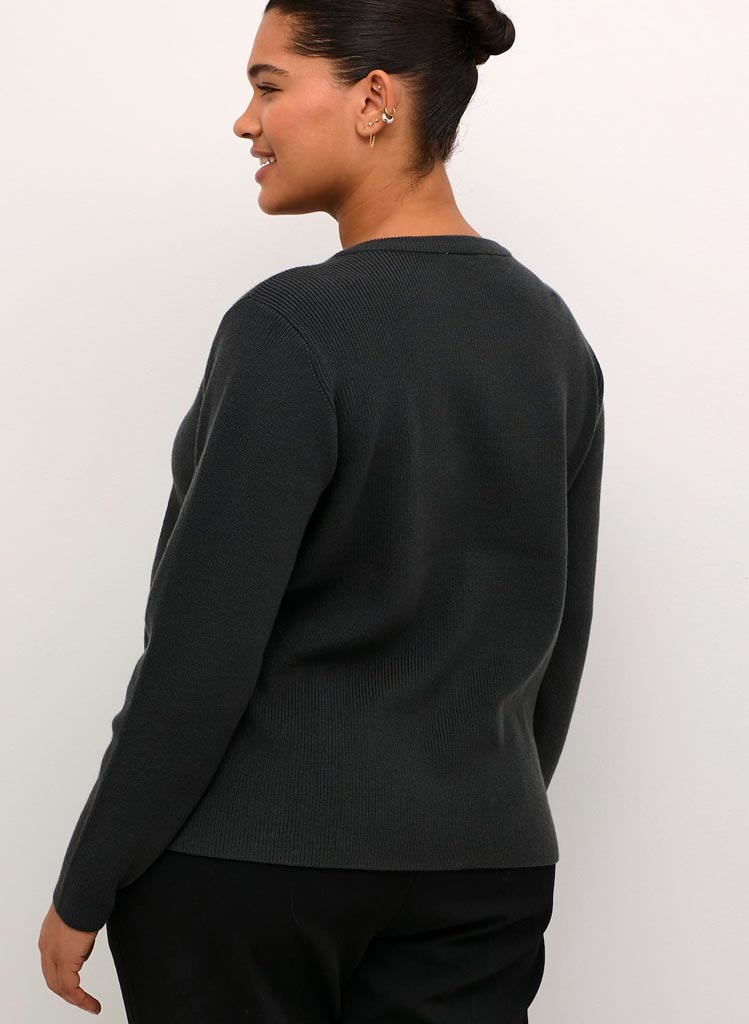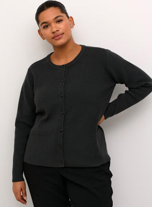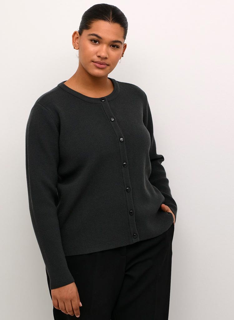 Klassísk hneppt peysa frá danska merkinu Kaffe Curve í nýjum dökkgráum lit.