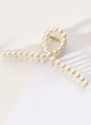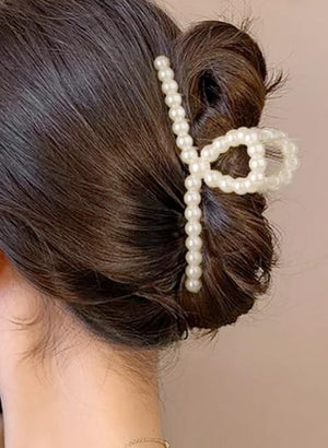 Hárklemman er hvít á litin með með litlum kúlum sem líta út eins og perlur.
