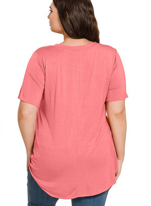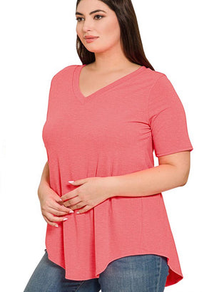Basic stuttermabolur með V-hálsmáli og klæðilegu beinu sniði.