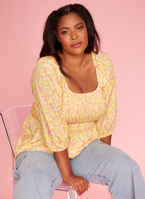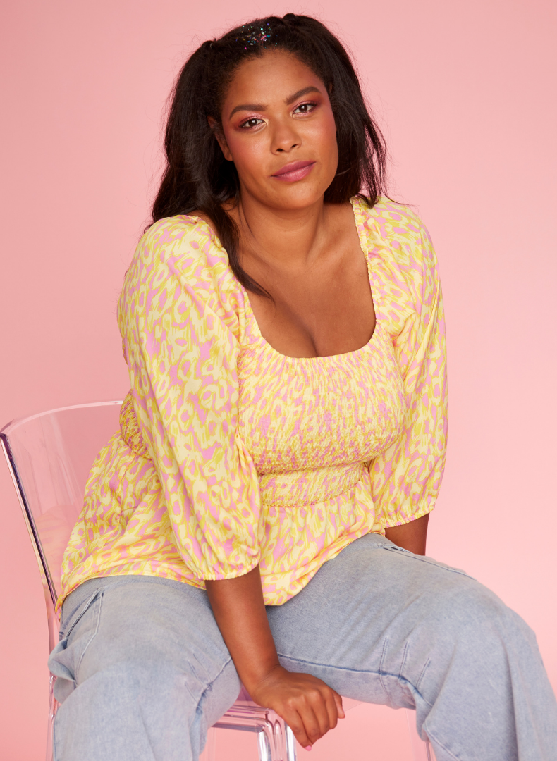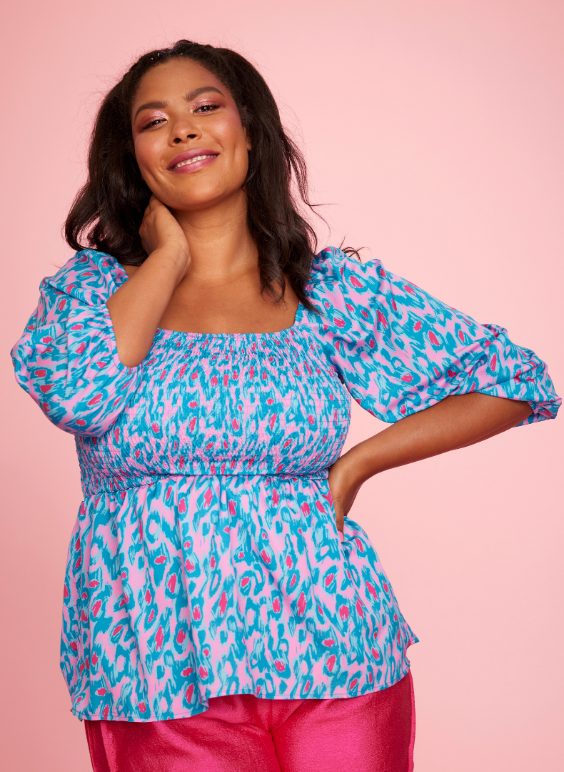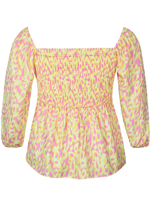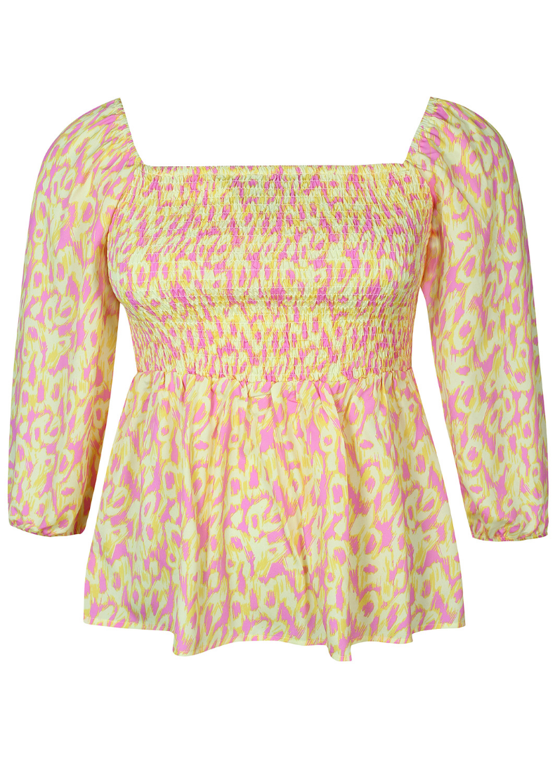 Sætur mynstraður toppur fyrir sumarið. Flottur við gallabuxur eða sumarlegar léttar bleikar buxur.