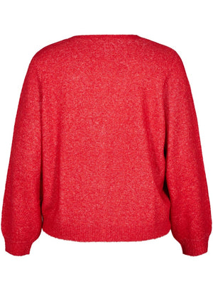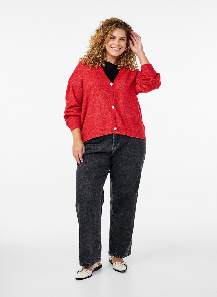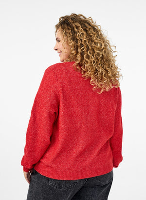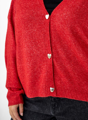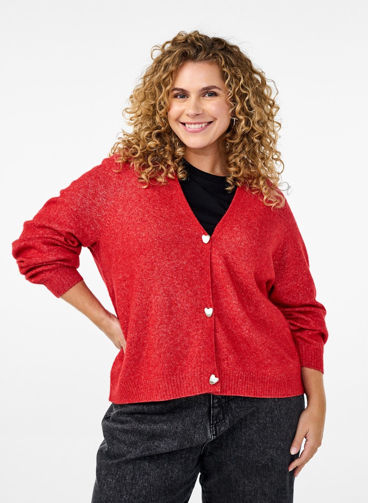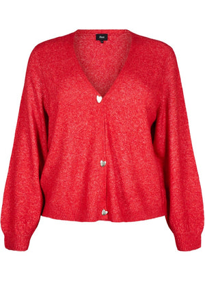 Fallega rauð, mjúk og hlý opin peysa eða golla frá danska merkinu Zizzi.