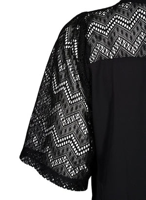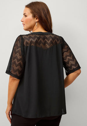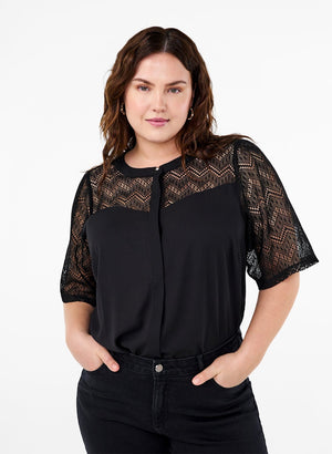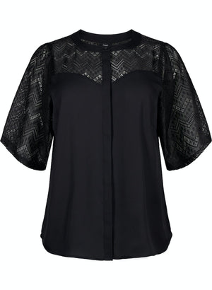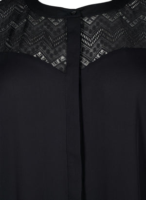 Skyrtan er örlítið laus í sniðinu og úr siffon efni í bland við fallega mynstraða blúndu.