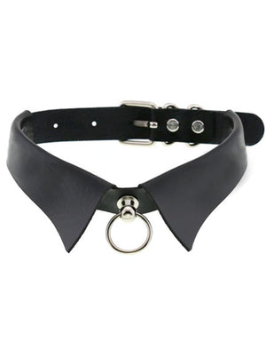 Flott pleður choker hálsmen sem er mótað eins og skyrtukragi með málmhring að framan.