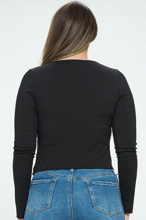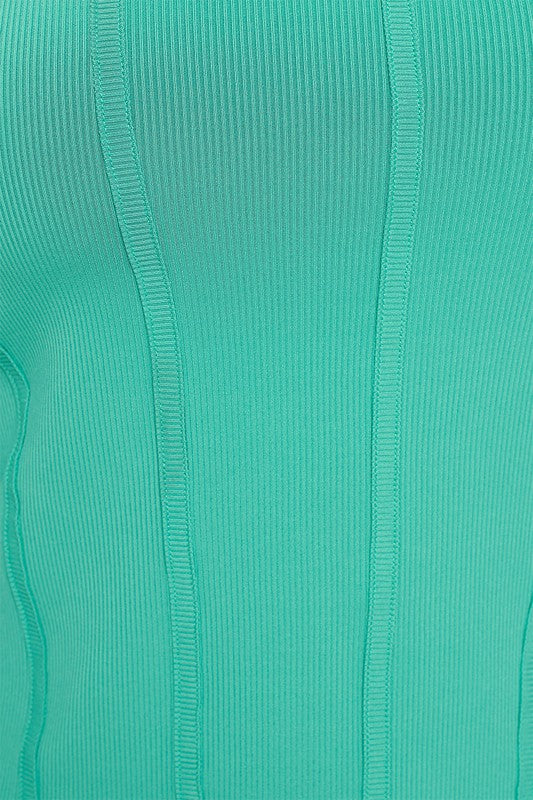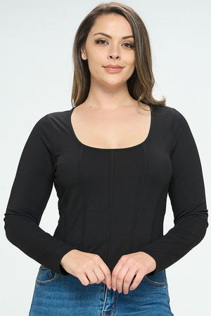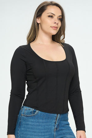 Síðerma crop-top toppur með saumum að framan sem minna á korsett.