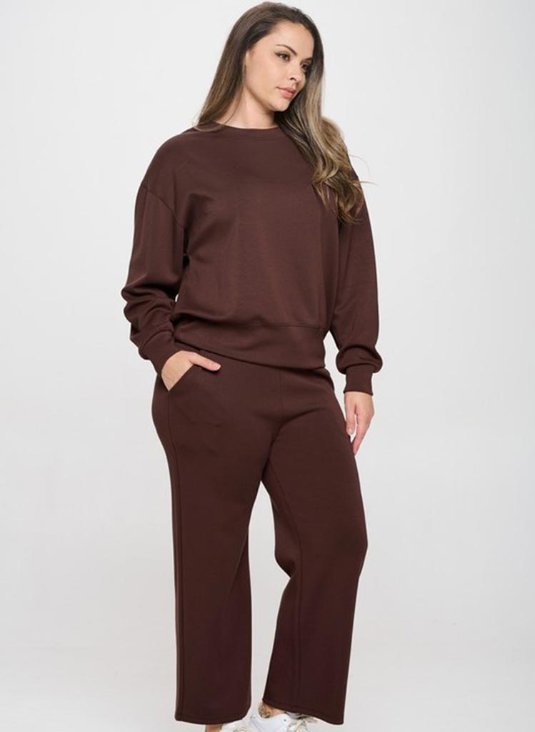 Buxur í stíl við peysuna er líka fáanleg í Curvy og er þá hægt að velja bæði á milli joggers eða buxum með beinu sniði.