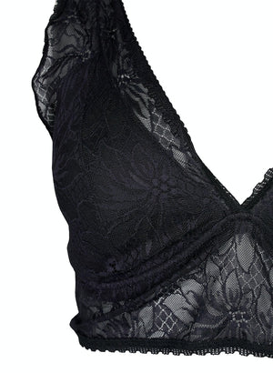 Fallegt V-lága hálsmál er á bralettunni og mjúk mótun yfir brjóstin og blúnda yfir.