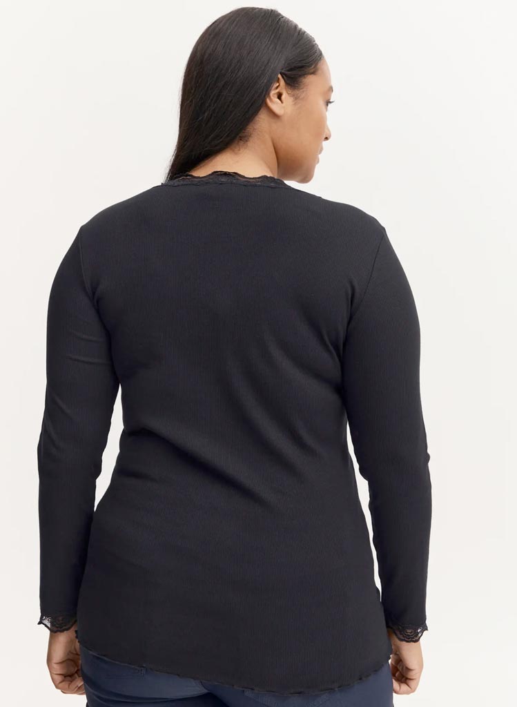 Mjúkur og dásamlega fallegur toppur með blúndulínu í hálsmáli og við ermar.