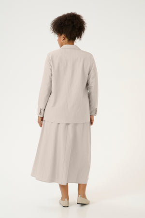 Jakkinn er með aðeins lausu sniði og er lokaður með einni tölu.