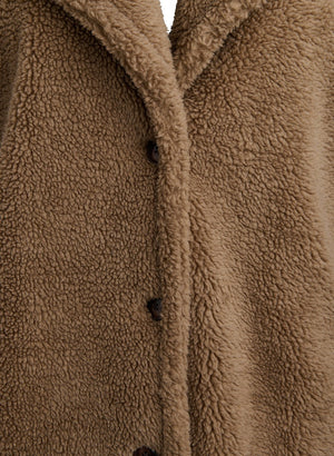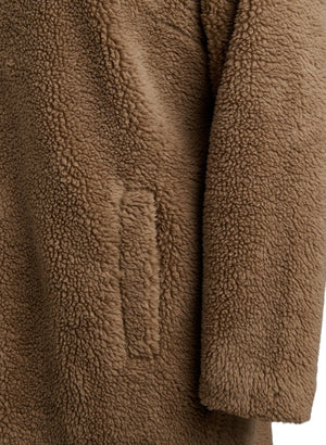 Kápan er úr hlýju og mjúku 'Teddy' efni og í fallegum brúnum tón.