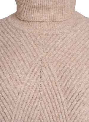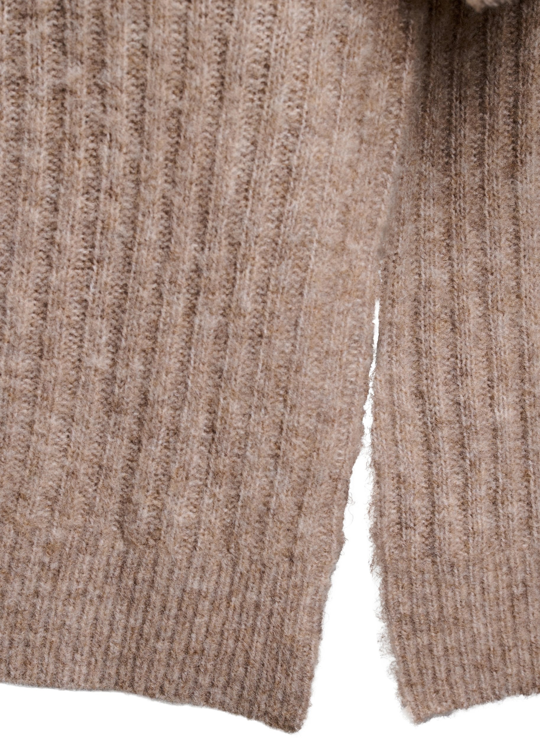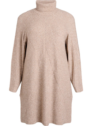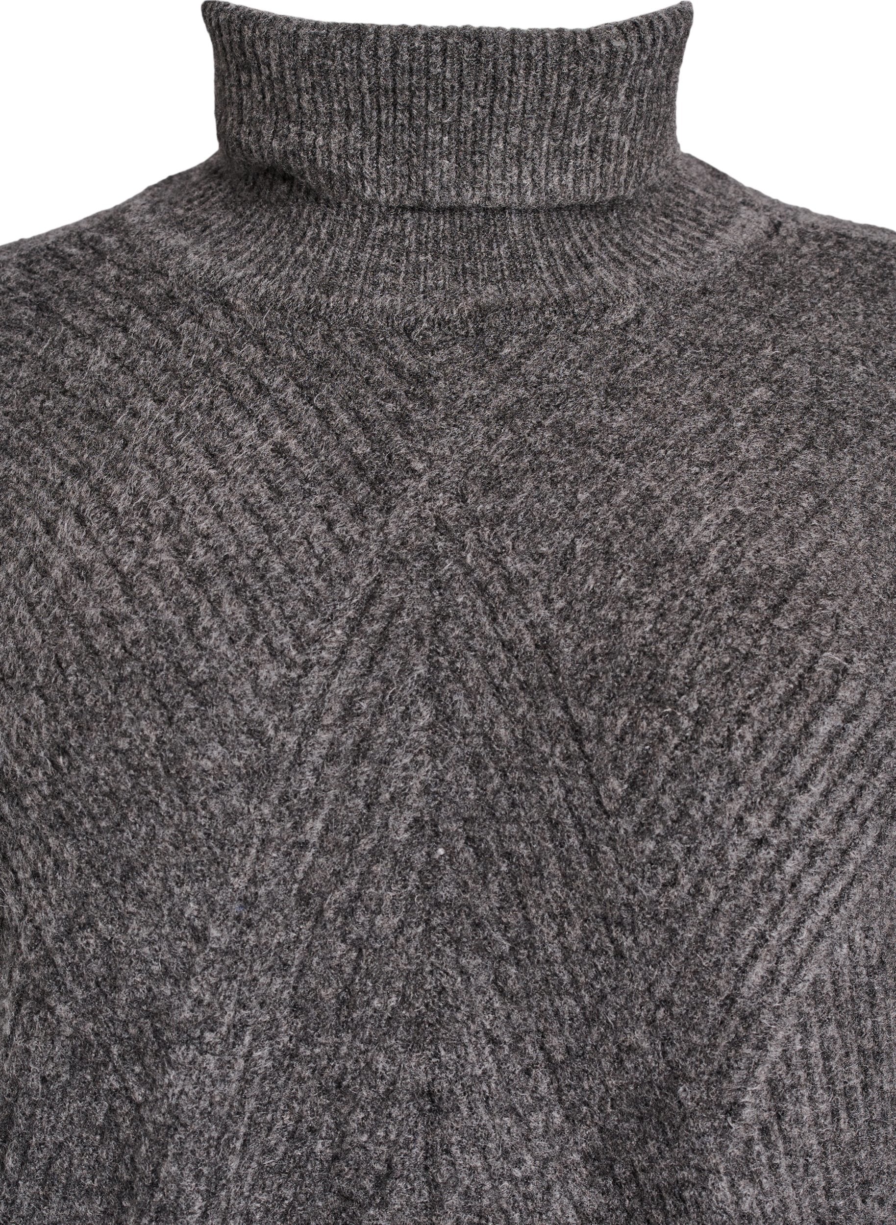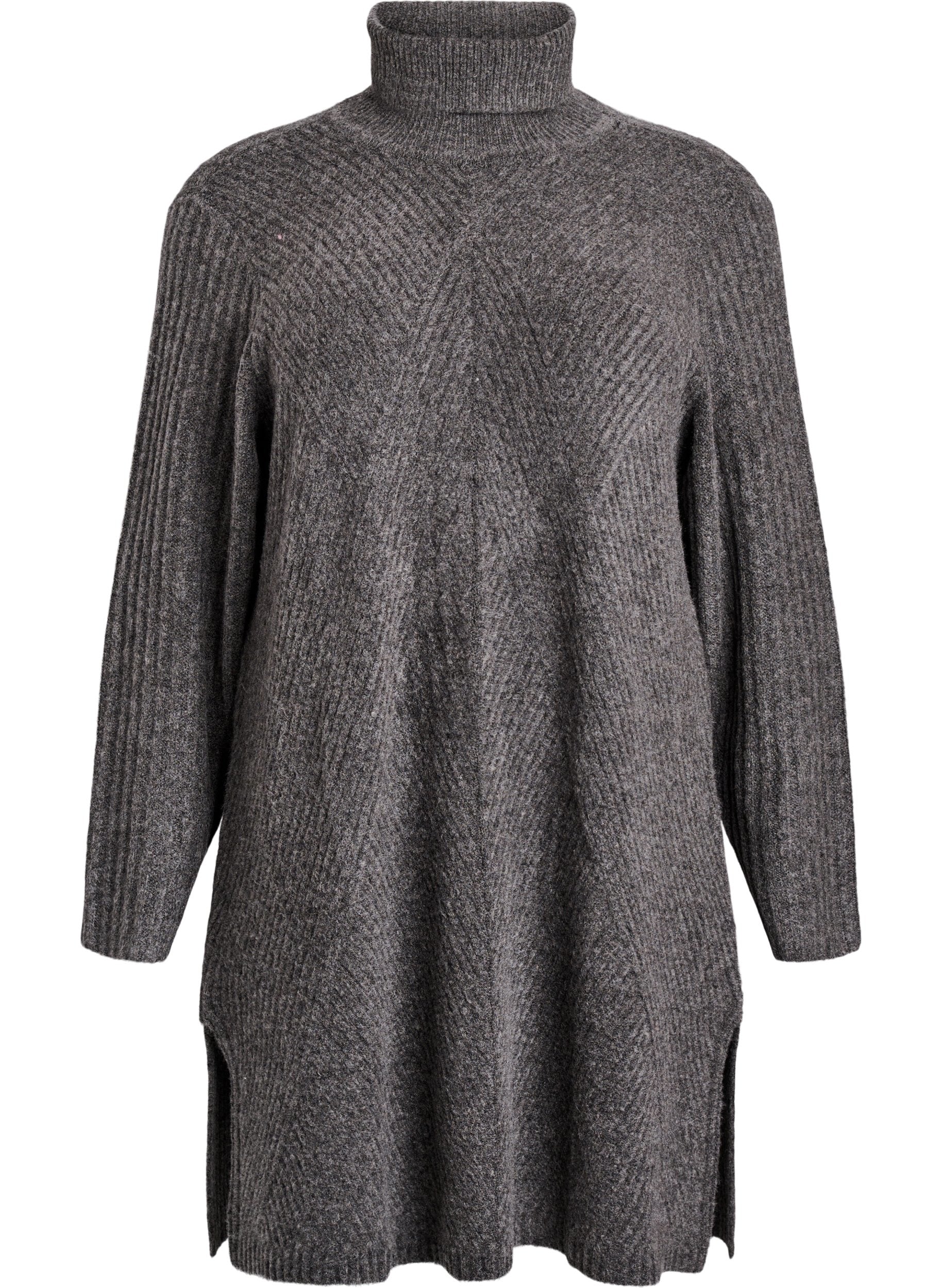 Hátt hálsmál og falleg riffluð áferð í efninu yfir.