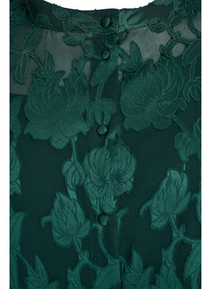 Túnikan er hneppt alla leið niður , lausar hálfar ermar og fallegt samlita mynstur.
