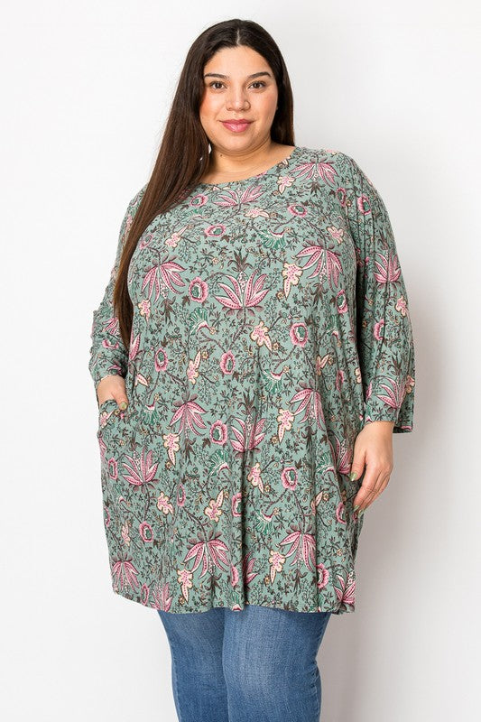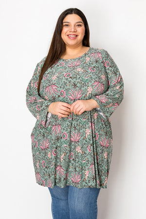 Létt og sumarleg túnika eða stuttur kjóll með földum vösum á hliðinni.