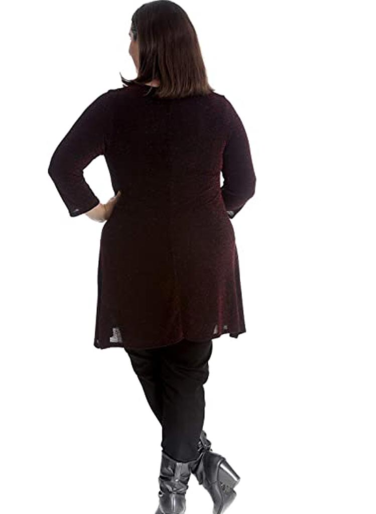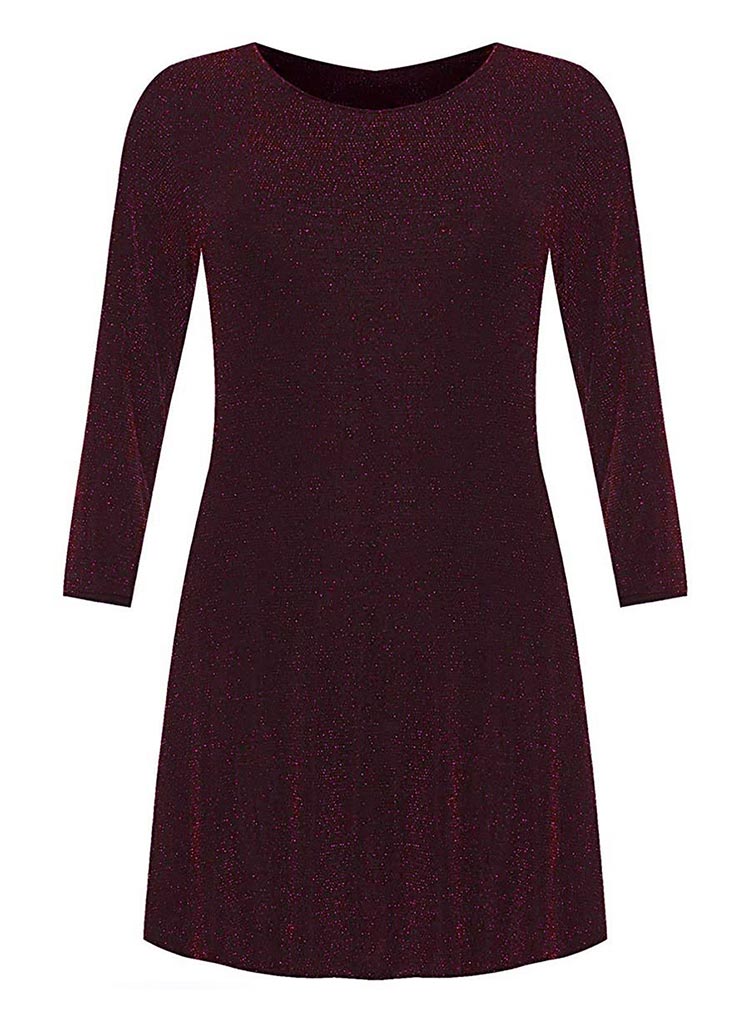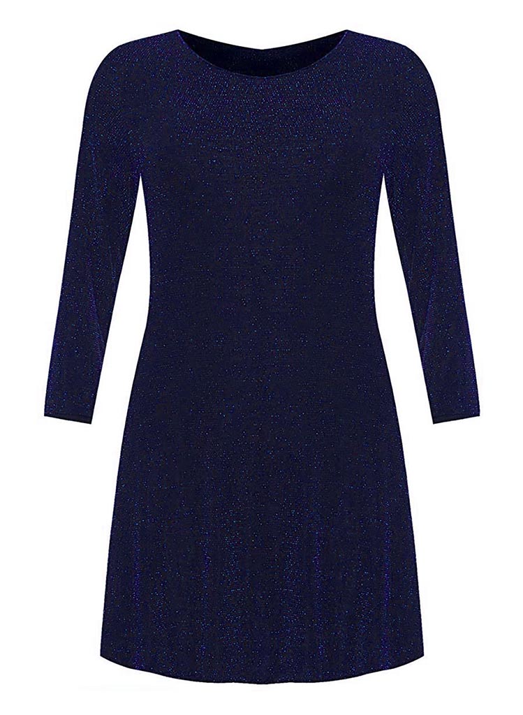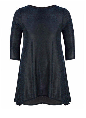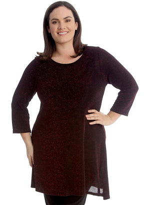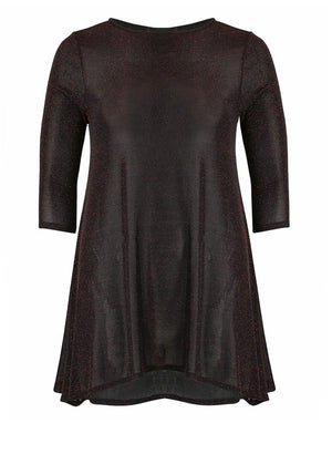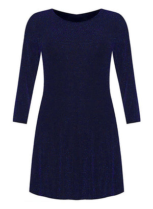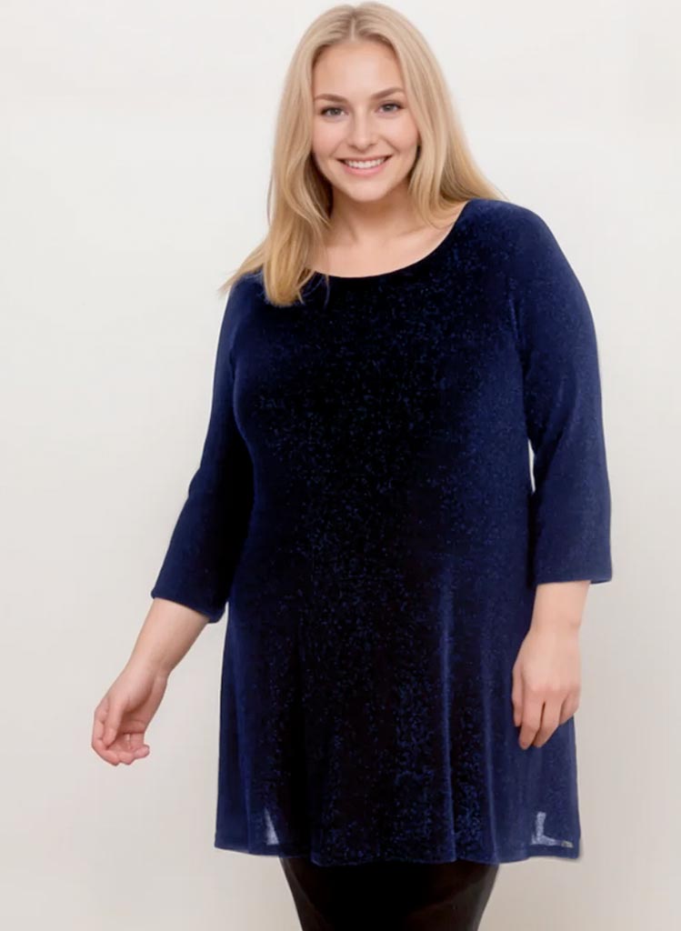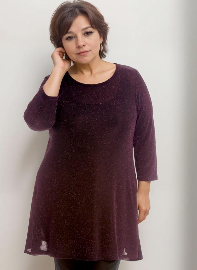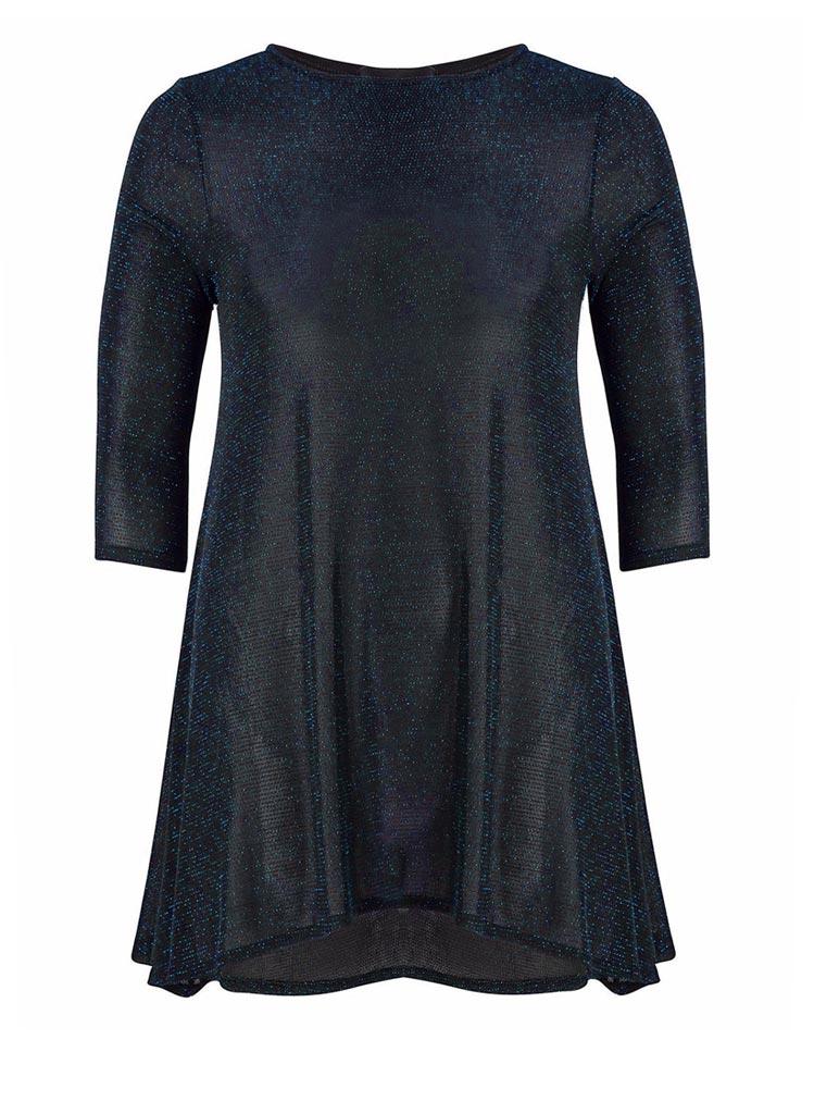 Þessi klæðilega A-sniðs túnika eða stutti kjóll er úr mjúku teyganlegu efni með smáum glitrandi þráðum sem gerir hana extra sparilega fyrir desember!