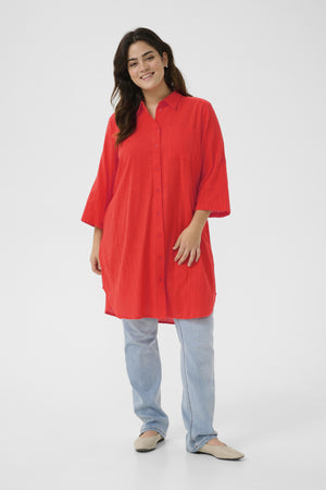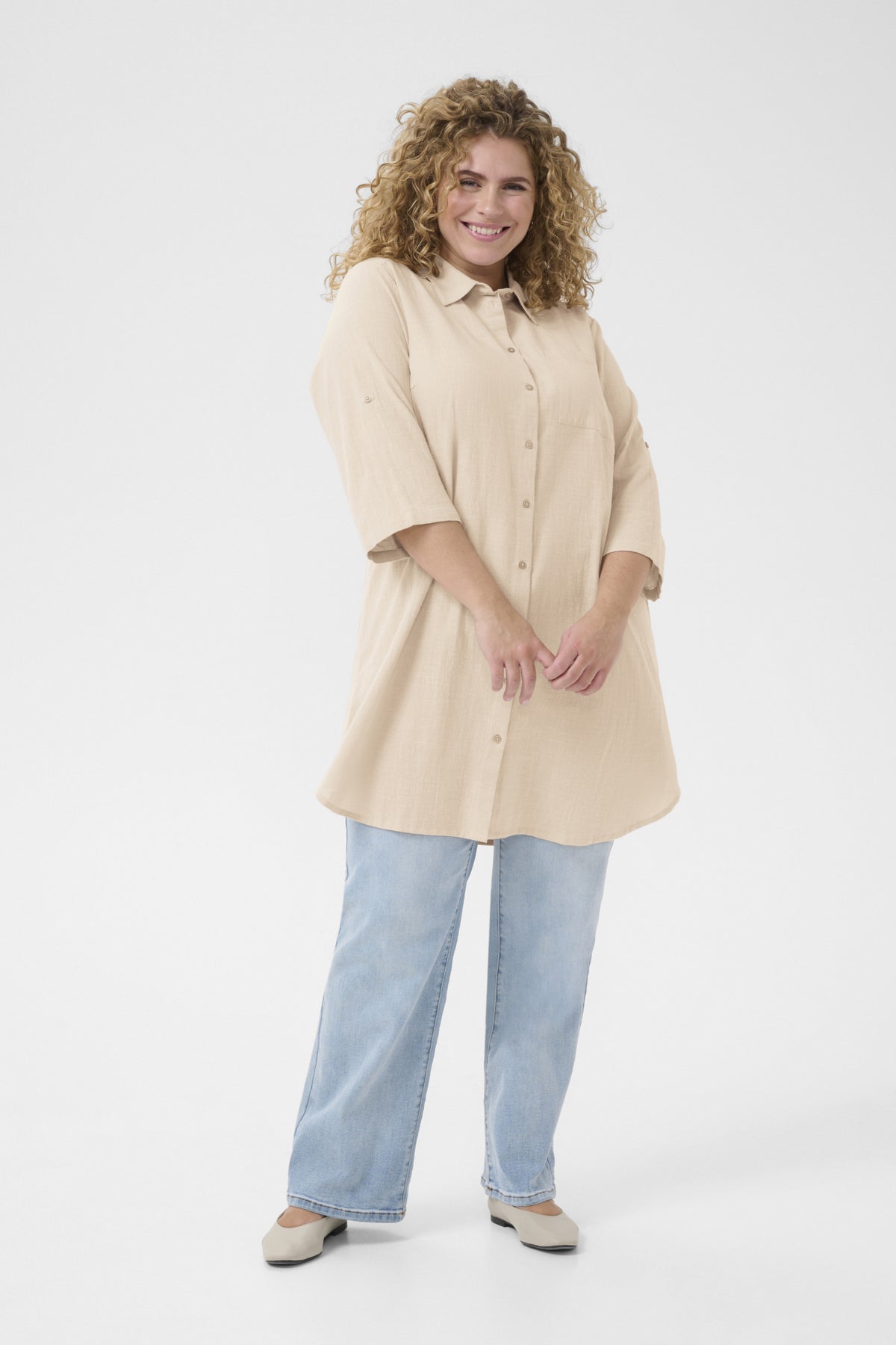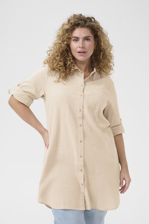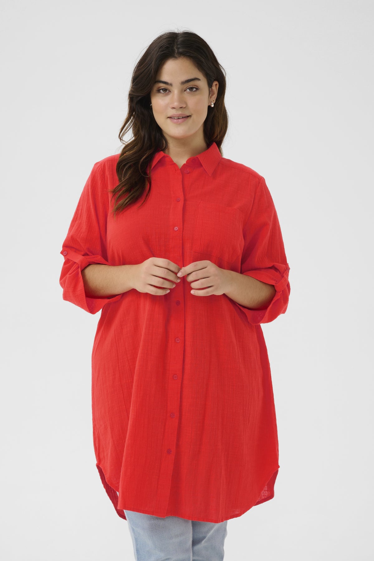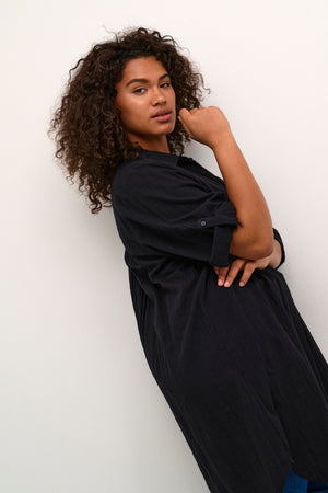 Extra síð skyrta eða skyrtukjóll frá danska lúxus merkinu Kaffe Curve.