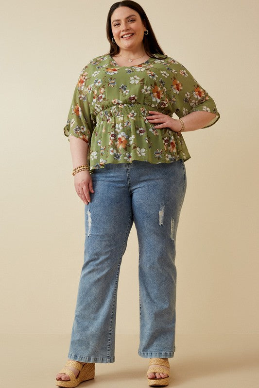 Fallega ljósgrænn siffon blómatoppur með V-hálsmáli.