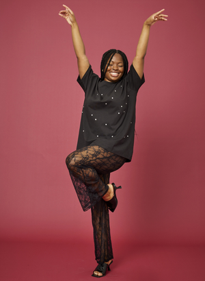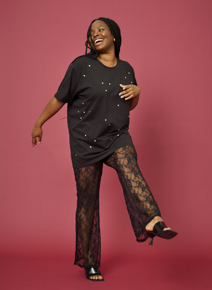 Einlitur svartur með skrautsteinum að framan, flottur dressaður upp við Rose Lace buxurnar frá Anyday eða hversdags við gallabuxur.