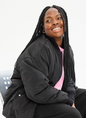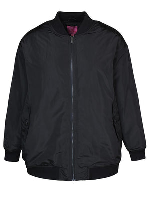 Úlpan er laus í sniðinu og rúm í stærðum með þessu klassíska bomber sniði sem nær aðeins niður fyrir rass.