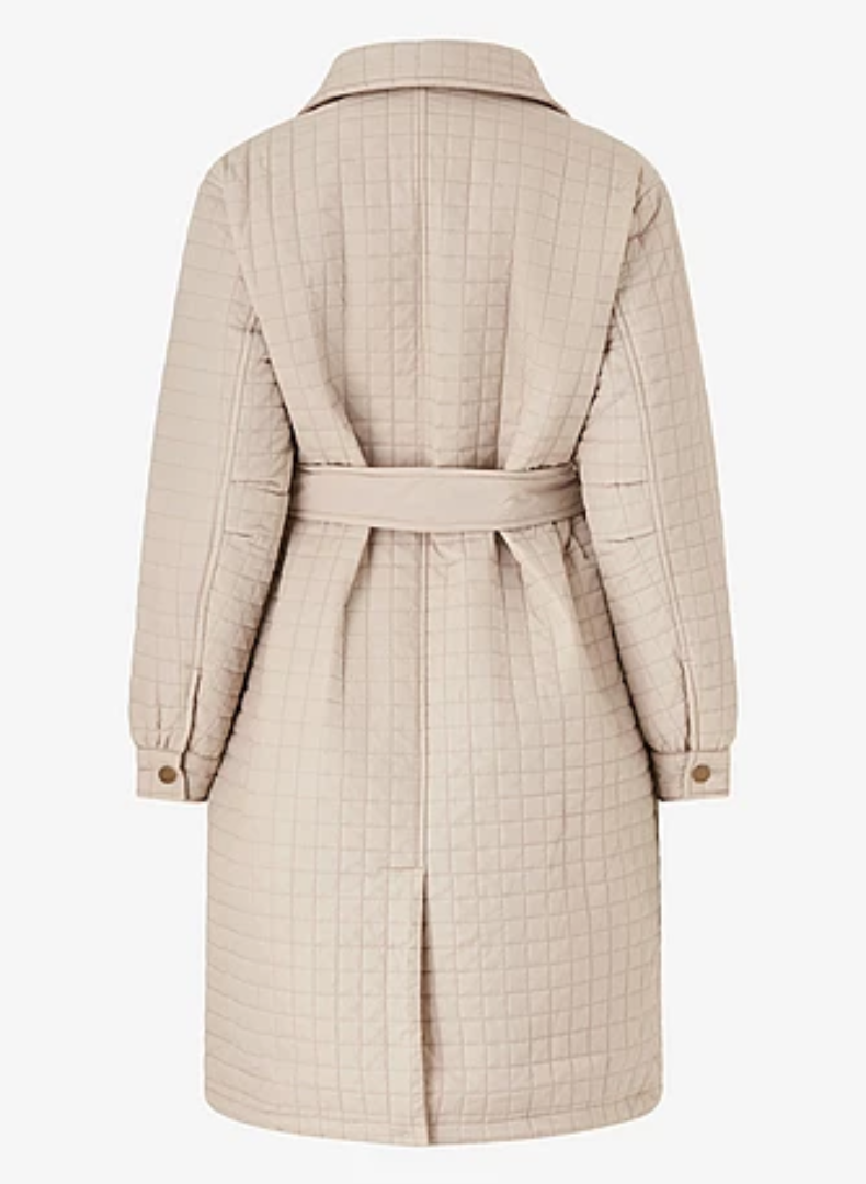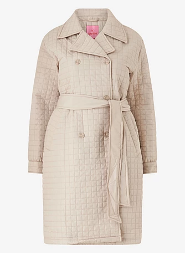 Jakkinn er tvíhnepptur með þessu klassíska rykfrakka sniði og bundinn saman með belti.