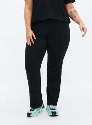 Mjúkar og þægilegar klassískar svartar síðbuxur frá Zizzi Active.