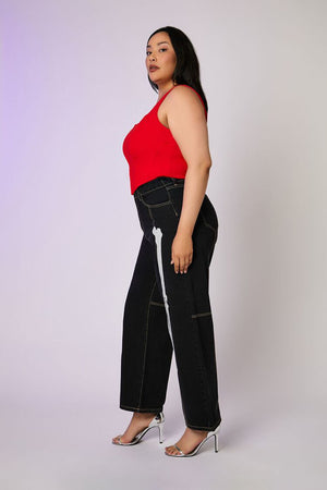 Geggjaðar gallabuxur með lausu og víðu sniði.