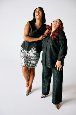Buxurnar eru svartar í grunninn með silfruðum glitrandi þráðum sem gerir þær líka extra sparilegan fyrir jól og áramót.