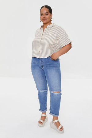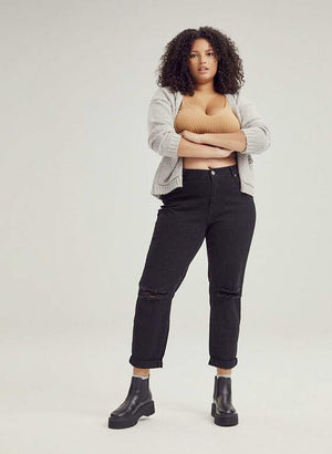 Sniðið á þessum kallast boyfriend snið - Sniðið er laust og þægilegt snið og millihár strengur.