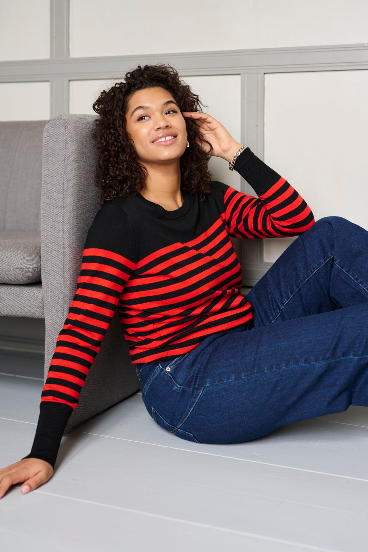 Efnið er lipurt og gefur vel eftir, mjög þægilegar gallabuxur sem verða í uppáhaldi hjá okkur í haust!
