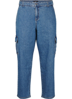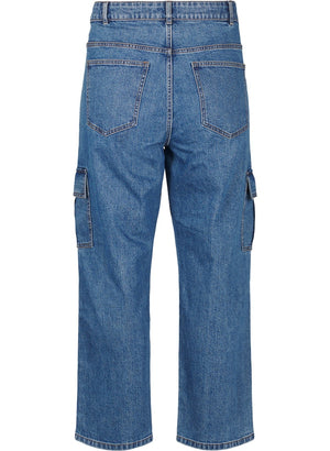 Þessar gallabuxur eru með beinum lausum skálmum og cargo vösum á hliðinni.