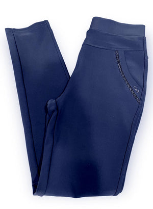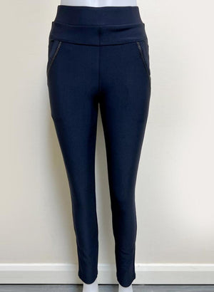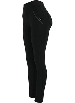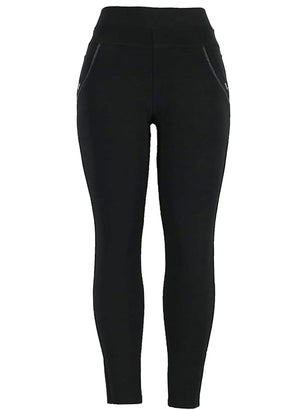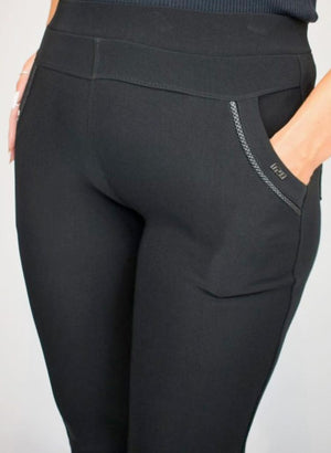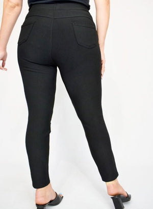 Flottar og þægilegar svartar teygjubuxur sem eru háar í mittinu og slimfit skálmar.