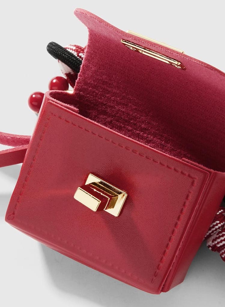 Töskuskrautið er samansett af hjartalaga krækju, reimum og svo lítilli tösku sem er húkkað í litla kirsuberja kippu svo þú getur tekið töskuna af og skreytt það sem þér dettur í hug!